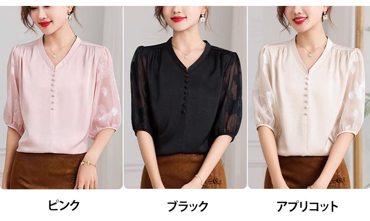 高級感Vネックシルク半袖レディース